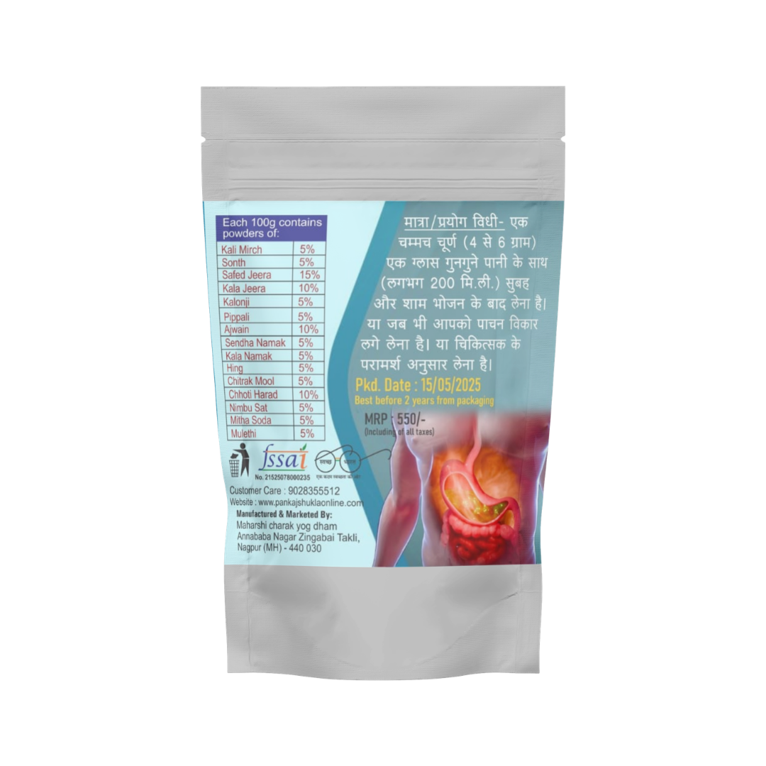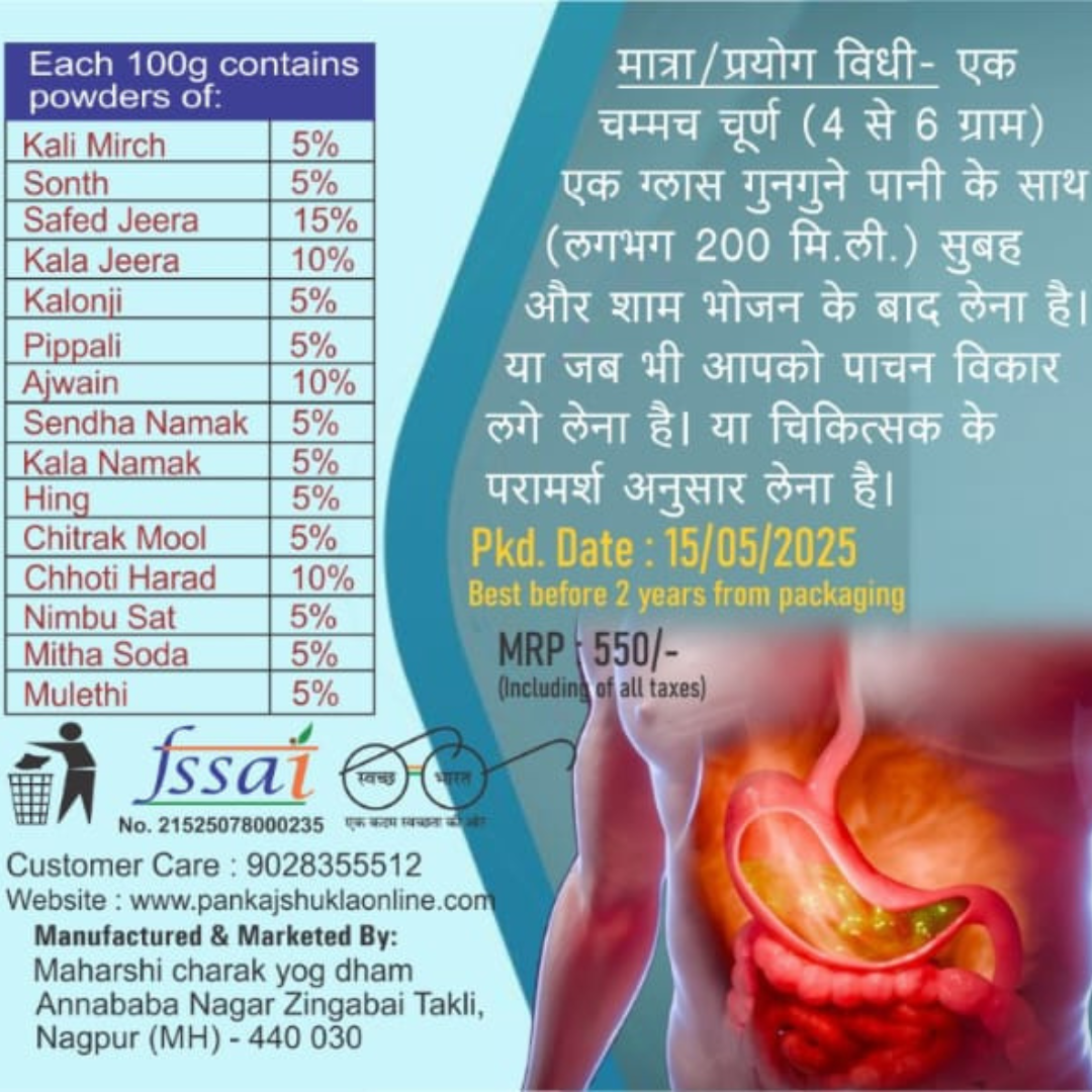 🍃 100% हर्बल और प्राकृतिक – शुद्ध आयुर्वेदिक तत्वों से तैयार पाचन सहायक चूर्ण।