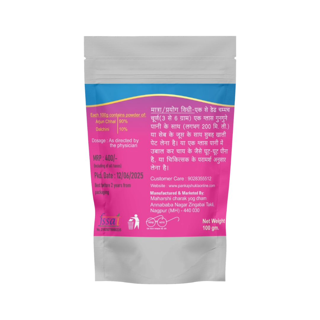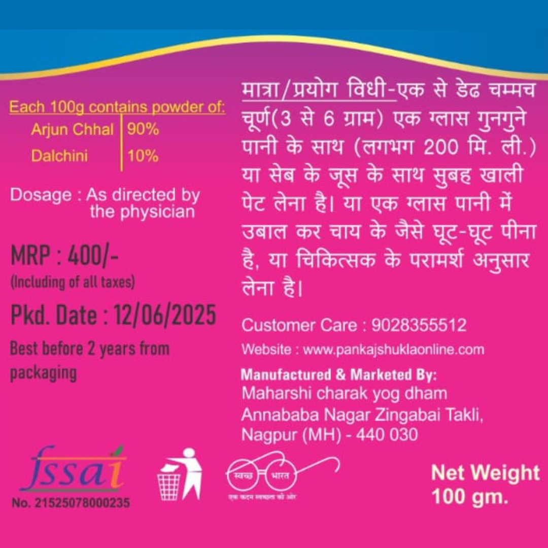 🌿 पारंपरिक आयुर्वेदिक फॉर्मूला – अर्जुन छाल और दालचीनी के प्राकृतिक संयोजन से तैयार।