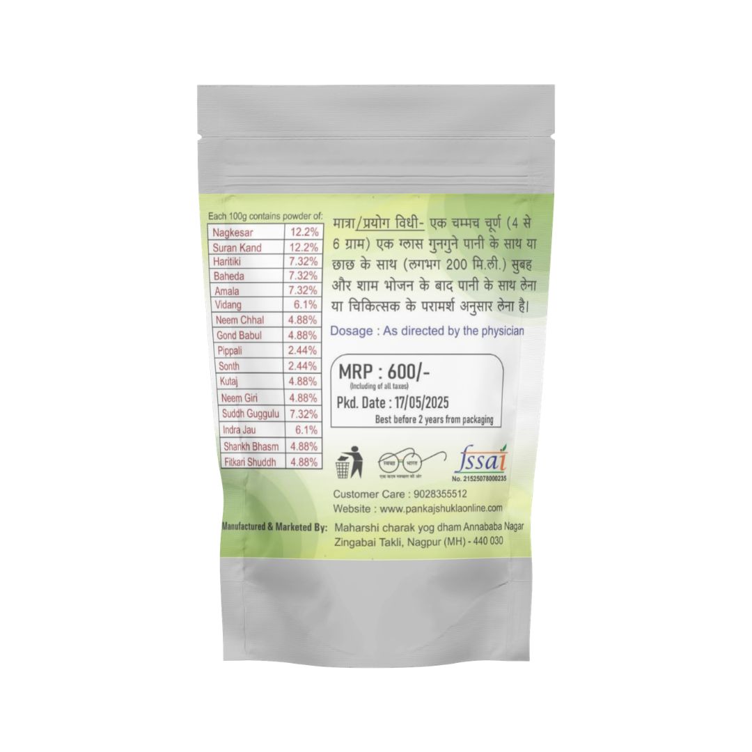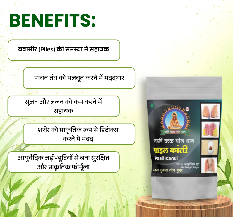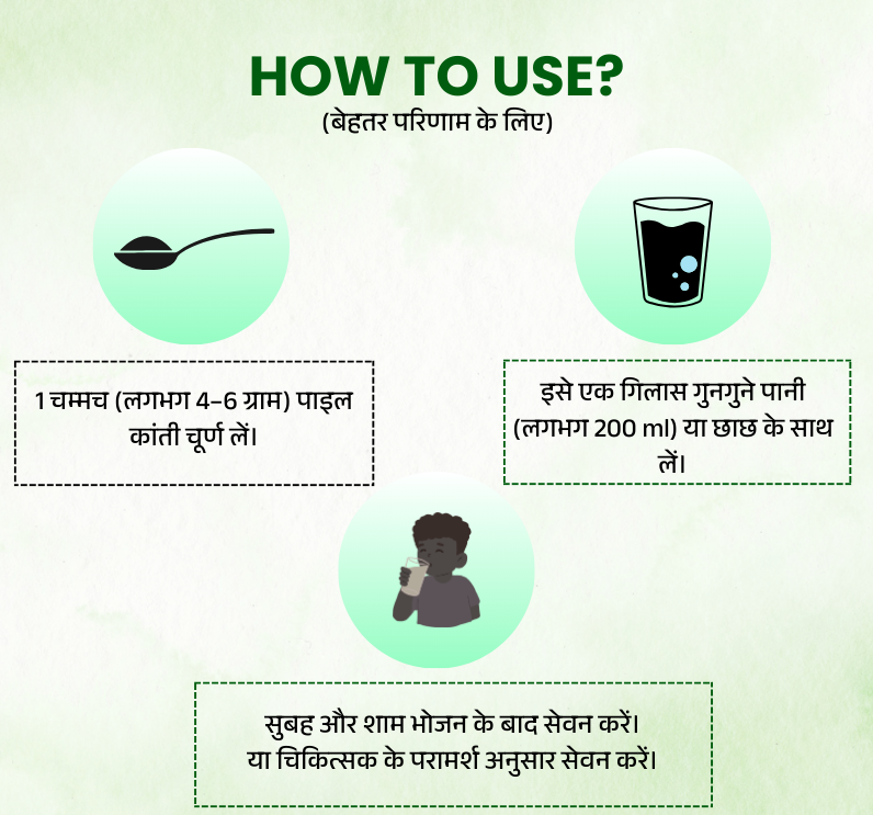 🌿 आयुर्वेदिक हर्बल फॉर्मूला – पाइल कांती चूर्ण पारंपरिक आयुर्वेदिक जड़ी-बूटियों से तैयार किया गया है।