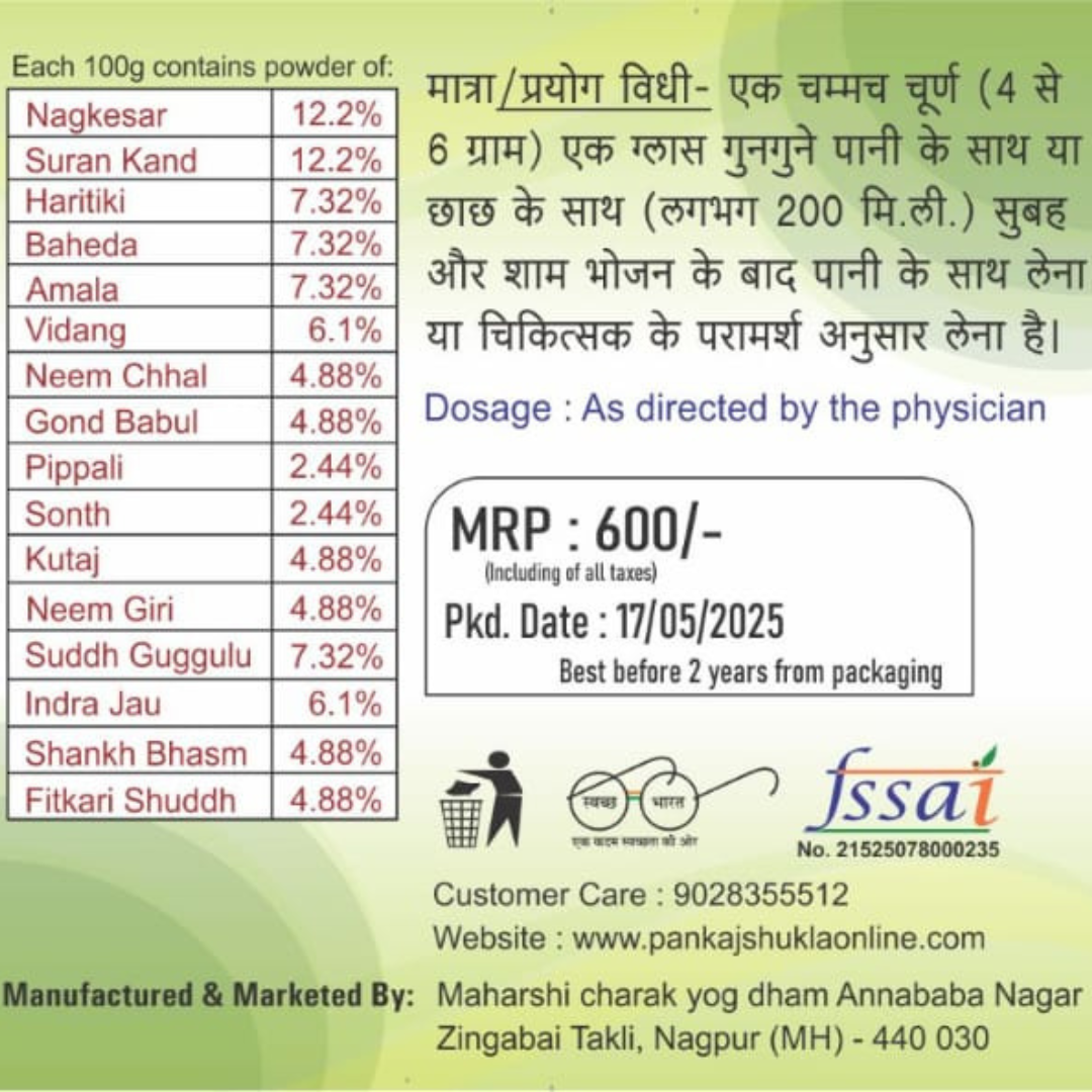 🔄 पाचन तंत्र को मजबूत बनाए – यह चूर्ण पाचन क्रिया को बेहतर बनाने में सहायक माना जाता है।