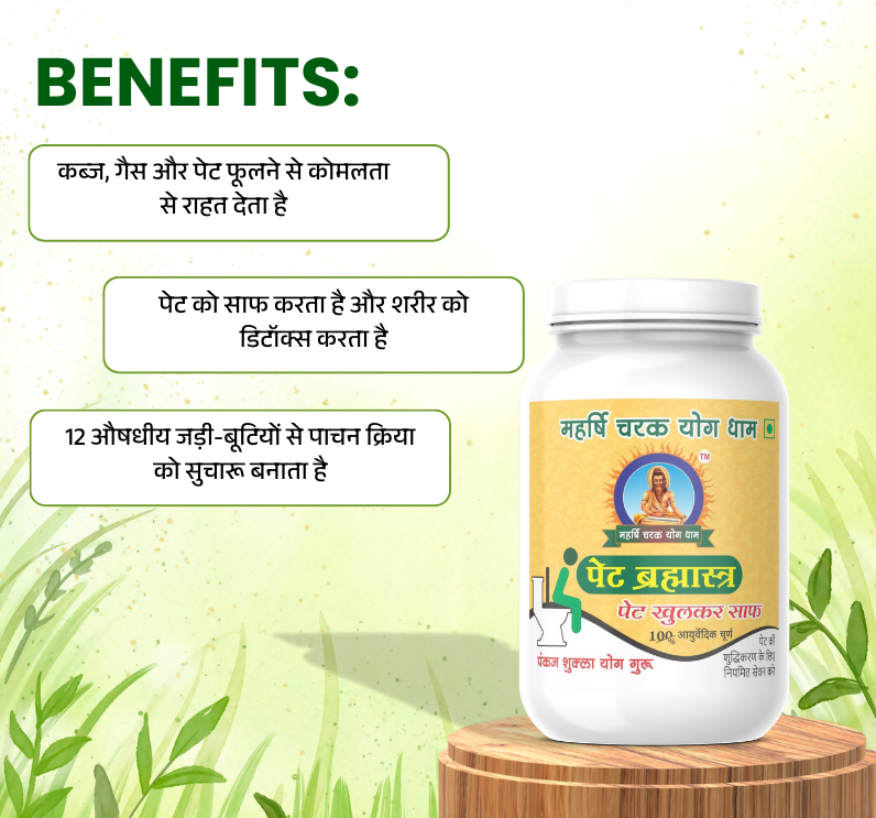 कब्ज, अम्लता और अपच से परेशान व्यक्तियों के लिए, पेट ब्रह्मास्त्र चूर्ण एक कोमल और प्रभावी समाधान है जो आंतों को साफ और स्वस्थ रखता है।