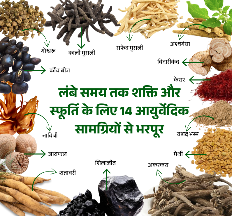 🔥 ऊर्जा पुनर्जीवक – थकान से लड़ता है और समग्र जीवंतता बढ़ाता है।