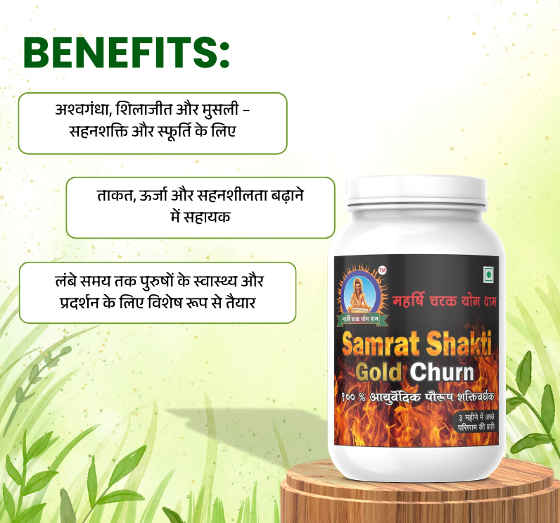 महर्षि चरक योग धाम सम्राट शक्ति गोल्ड चूर्ण के साथ अपनी आंतरिक शक्ति को उजागर करें।